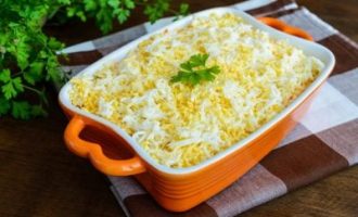 Uz smalkas rīves sarīvē kausētu sieru un pievieno olu masai.