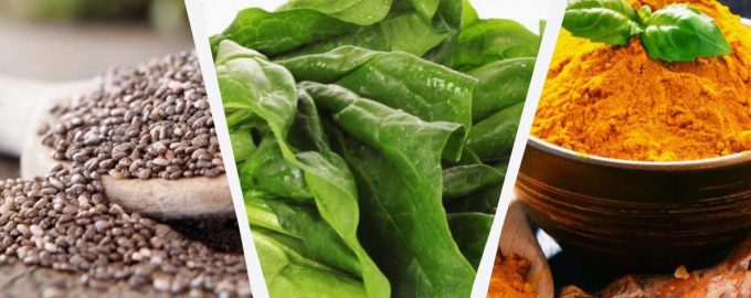 Chia, spināti un kurkuma – superfoods / kolāža My, foto depositphotos.com